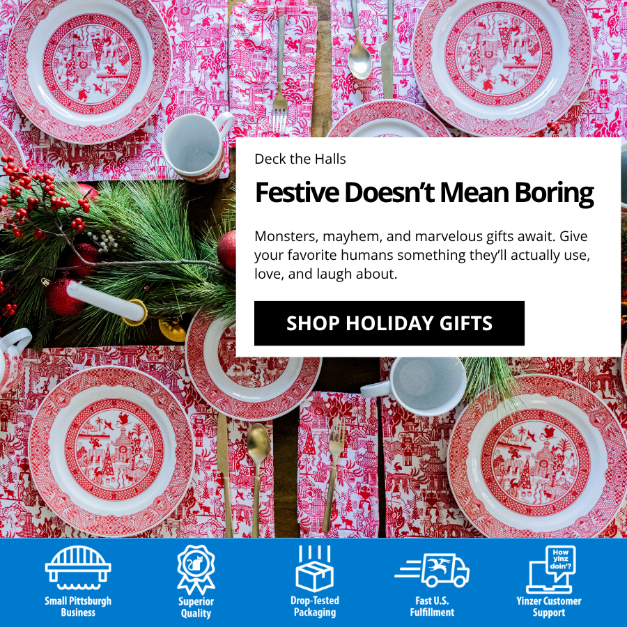 Calamityware is a small, eight-person, one-dog company headquartered in Pittsburgh. We love bringing the darkly whimsical view of our founder and chief monster-maker, Don Moyer, to life. Our products are high quality, meticulously manufactured items that make wonderful gifts for you and other weird-adjacent people in your life. Our goal is to make you smile. Read more...