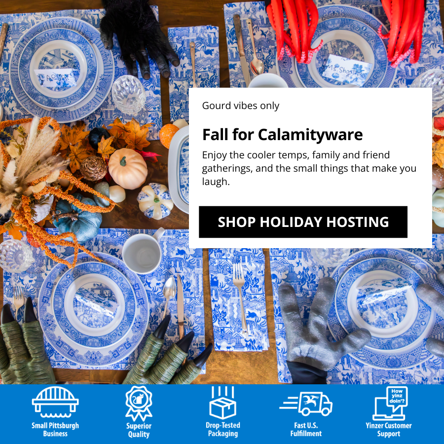 Calamityware is a small, eight-person, one-dog company headquartered in Pittsburgh. We love bringing the darkly whimsical view of our founder and chief monster-maker, Don Moyer, to life. Our products are high quality, meticulously manufactured items that make wonderful gifts for you and other weird-adjacent people in your life. Our goal is to make you smile. Read more...