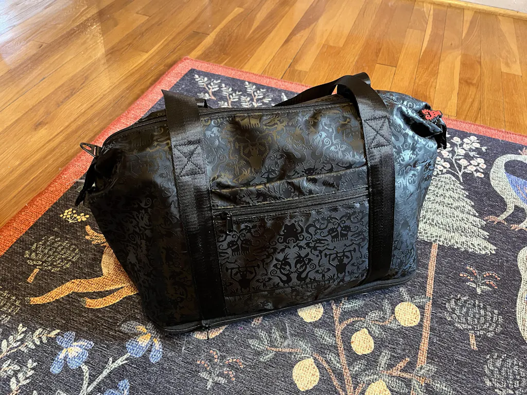 A dignified pattern of demons engaged in wholesome exercise seemed like a great design for gym bags. Made with high-quality polyester fabric with a slick, black-on-black print. Unleash your inner demon and seize the day!