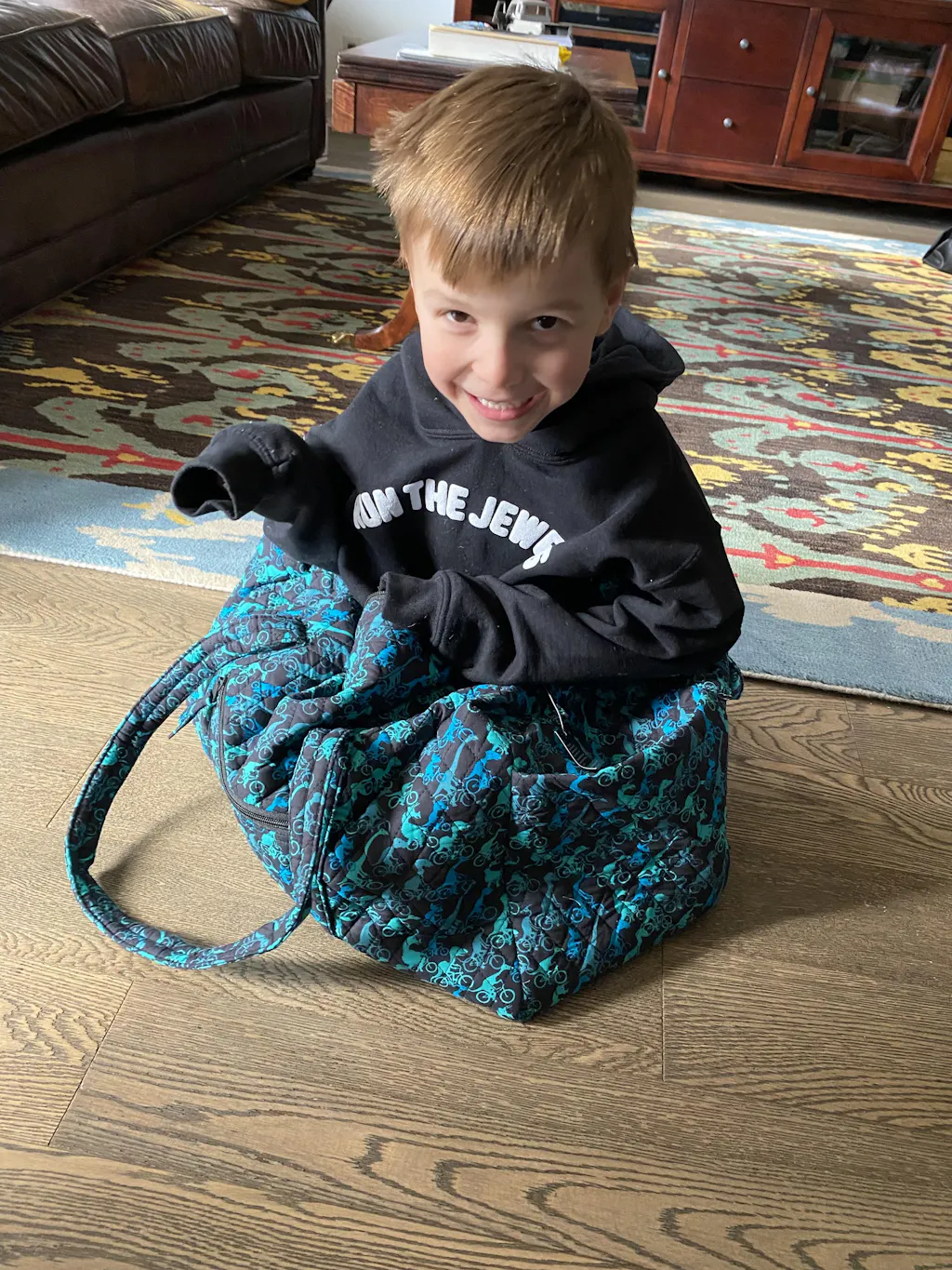 Don't get me wrong, this is a fabulous bag with whimsical peddling dinos and it is well designed, but the zipper broke the second time I used it, and no I did not overstuff with too many sleeping bulldogs. I had a better quality zipper installed, and then the stitching on the handles started to unravel. I've spent many hours restitching the handles and fixing a few seams that also wanted to unravel. Maybe I bought a lemon instead of a bag. Calamityware products are usually top notch, so the issues with this bag are really surprising and disappointing.