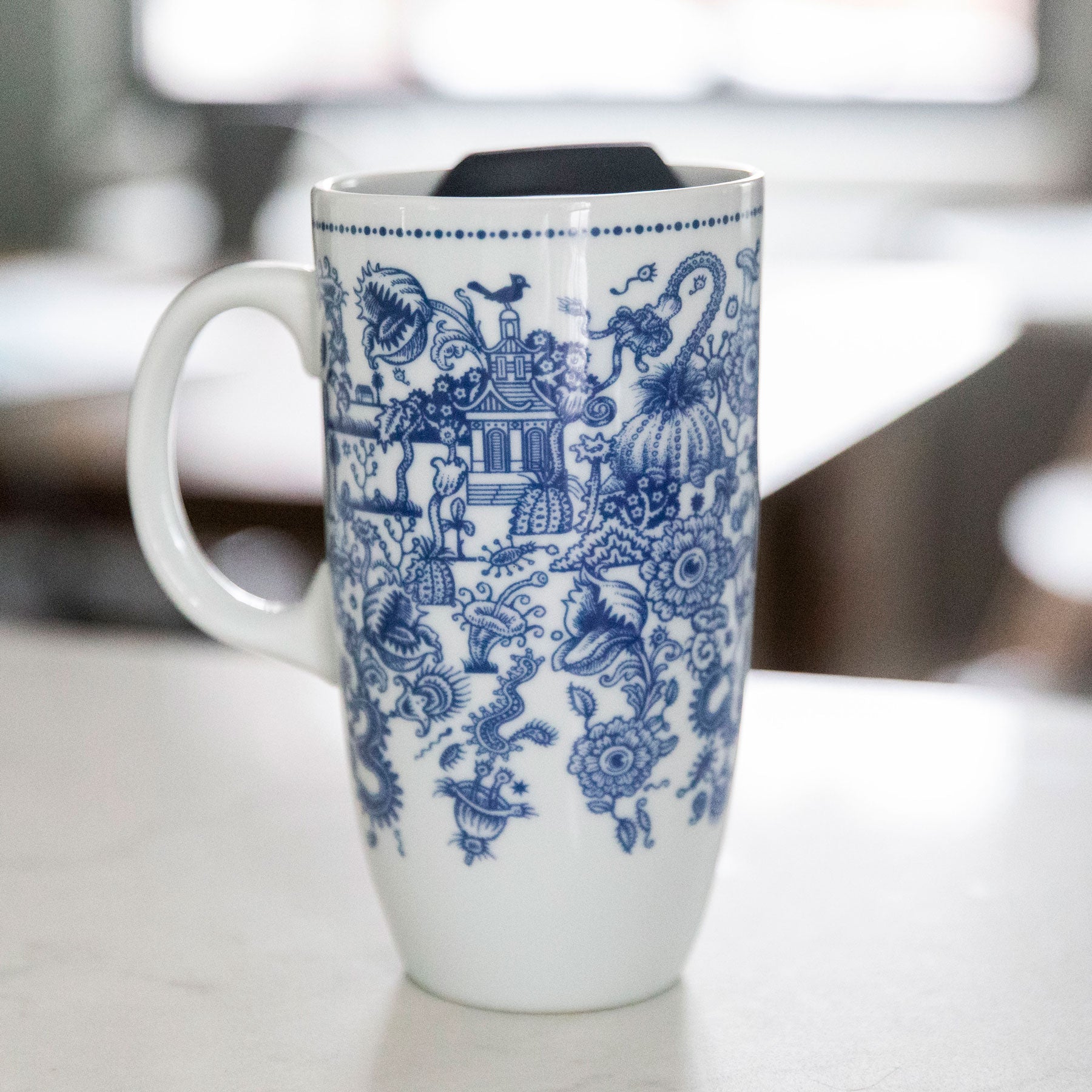 Made of fine porcelain and designed to fit in a cup holder.