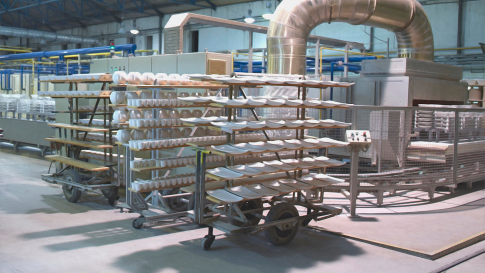 These porcelain pieces were fired at the Kristoff workshop in Valbrich, Poland, one of the oldest and grandest porcelain workshops in the world. Kristoff began making porcelain in 1831 and its work can be found in museums and in the palaces of royalty. Our porcelain designs are in-glaze, which means slightly melted into the surface of the piece, to ensure a beautiful crisp image for years to come. Photo by Porcelana Krzysztof Sp. z o.o.