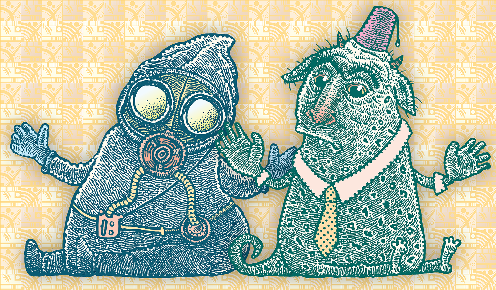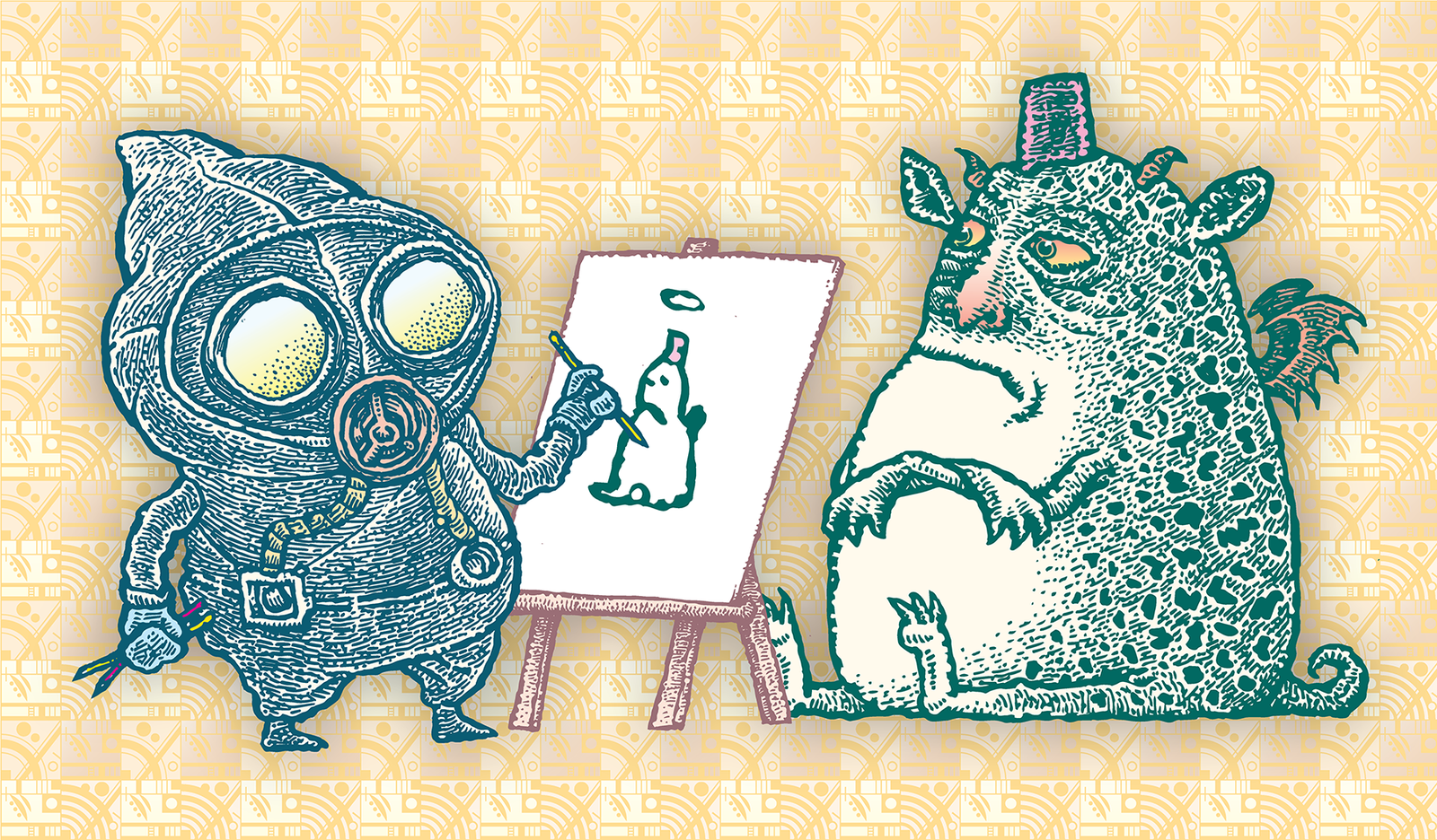 The idea for Calamityware grew out of a slightly fanatical habit of Don Moyer, who draws strange and otherworldly creatures doing everyday activities, and posts the sketches on Flickr.