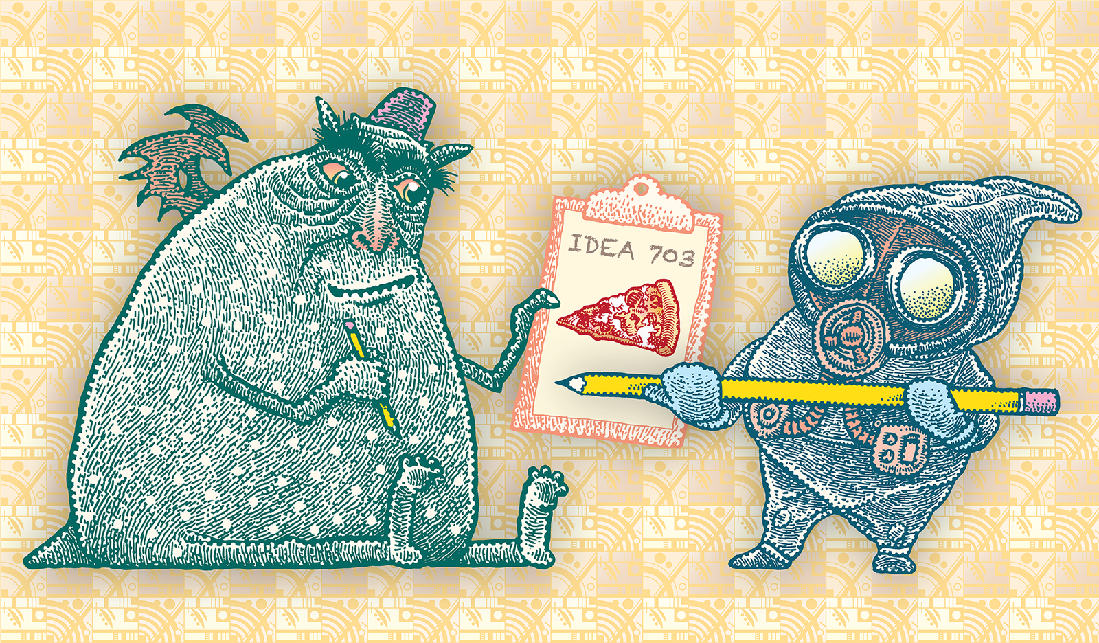 When I’m developing a product idea, I do dozens of sketches, variations, and refinements to resolve all the details. Adjustments to an alien’s antennas, the spaces between letters, and the density of a shadow can take weeks. Often, in the end the alien is eliminated, the specific letters are changed, and the shadow is superfluous. The effort of chasing perfection can sometimes be fun, but it’s rarely relaxing. Fortunately, if the fun evaporates, I just drop the whole project and work on something else.