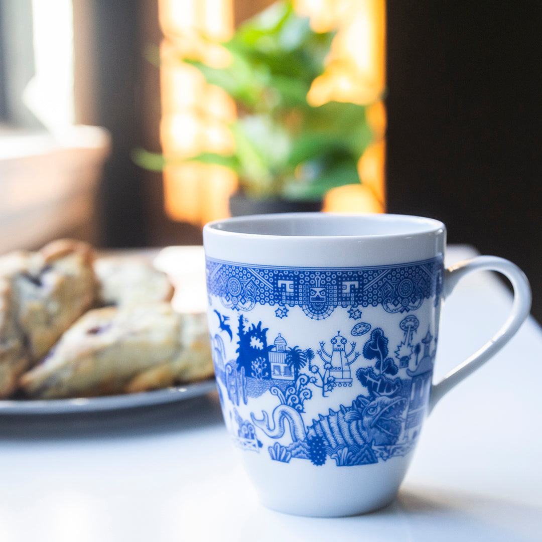 We also created a 20 ounce version. Both are made and decorated by the award-winning Kristoff Porcelain workshop in Poland using the traditional in-glaze technique. The mugs are food safe, microwave safe, and dishwasher safe.