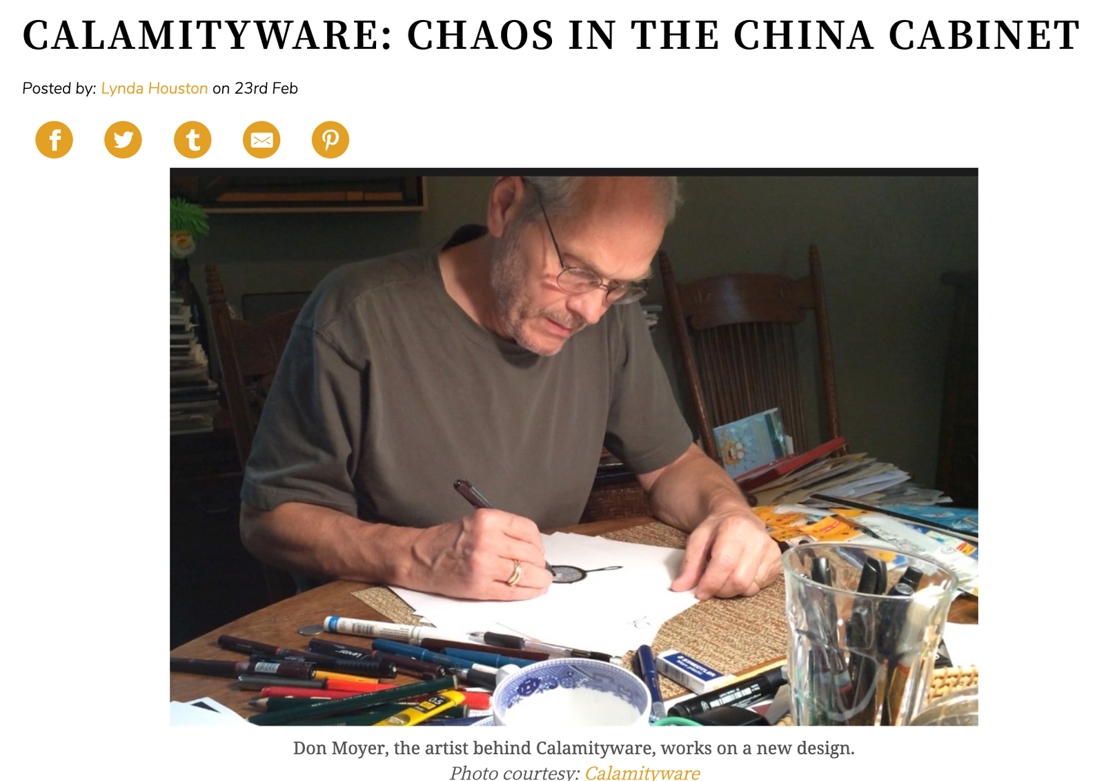 Worthpoint.com was interested in writing an article on Calamityware, how we got started, and how Calamityware fits in the world of collectibles. WorthPoint is an online resource for researching, valuing, and preserving antiques, art, and collectibles. Has Calamityware reached "collectible" status yet?
