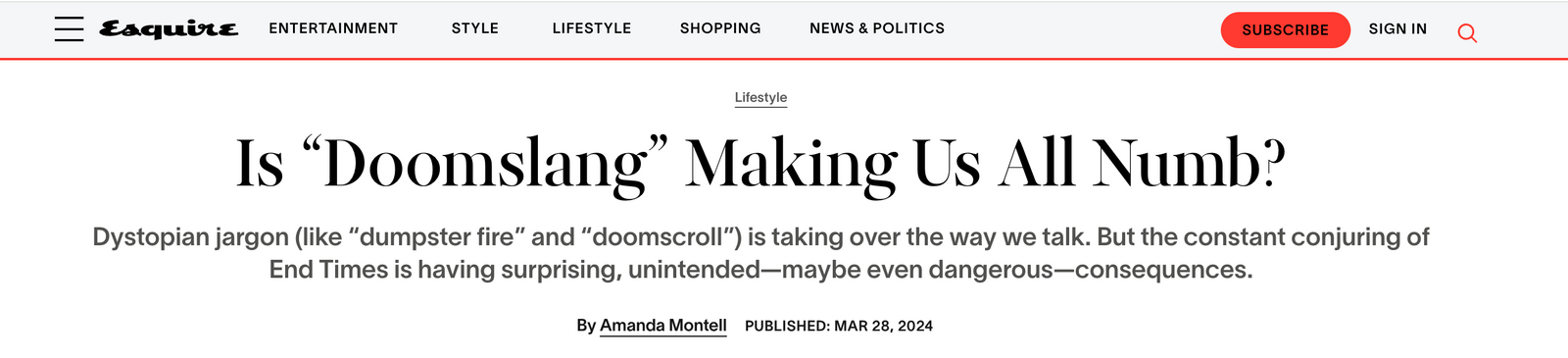Calamityware was mentioned in this article published on Esquire.com relating to Doomslang—another word for dystopian jargon like "dumpster fire" and "doomscrolling." However, the writer referred to our little business as a more palatable version of doomslang. Things could be worse, right?