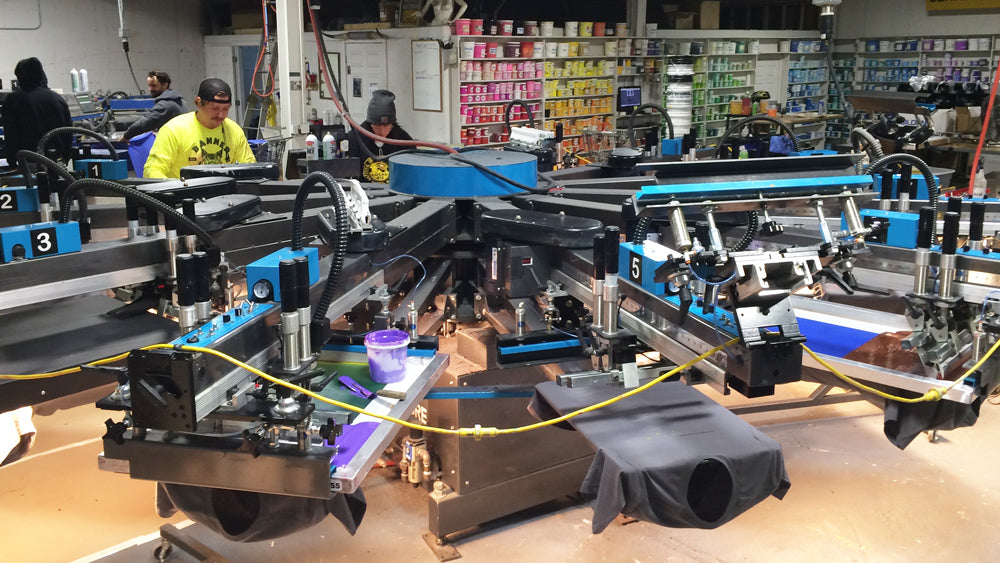 These garments are lovingly silkscreened by the folks at Commonwealth Press, an artist-run shop located in our hometown of Pittsburgh. They’re darned good at what they do, have mastered all the application techniques we require, and they treat their customers and employees right.